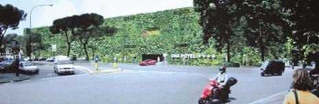 Cosa significa tutto ciò tradotto in termini di progetto? “Un albergo che deve sapere di essere a Firenze e accettare il terreno dell’architettura! Per questo sono convinto che il programma può avere un impatto notevole sull’idea di albergo in un centro storico, se l’architettura contemporanea vi è simbolizzata”. Da queste premesse è nato un progetto di “splendido isolamento”, per proteggere dall’inquinamento acustico e da un’architettura di prossimità senza qualità. Un muro di 18 metri di altezza, spesso un metro e mezzo, protegge l’interno e allo stesso tempo suggerisce il privilegio di entrare e essere cliente. È ‘bucato’ da quattro porte che conducono a una sovrapposizione di terrazze coperte (un chiostro a più piani, un terrazzo elisabettiano?) che contengono fiori che creano dei campi, dei paesaggi.
