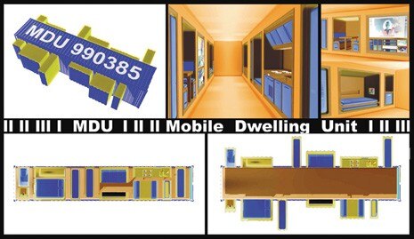 Il risultato del loro lavoro, insieme allo studio effettuato per arrivarci, è in ora mostra allo University Art Museum di Santa Barbara. L’idea di base è semplice: una serie di sottovolumi, che all’occorrenza si espandono, hanno ognuno una specifica funzione per vivere e lavorare. Un computer centrale regola le diverse attività: l’emissione di aria per gonfiare i volumi, la temperatura, l’illuminazione e le comunicazioni (monitor, microfoni e altoparlanti) distribuite per tutto il container. Per trasportare la mini abitazione basta una nave cargo o un camion.