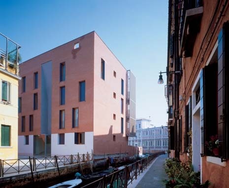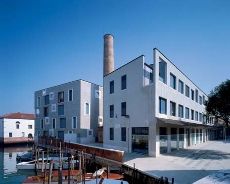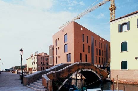 I cinque edifici perseguono ciascuno una particolare ricerca di carattere. Questo carattere non deriva però da una riflessione sui contenuti, sui programmi, sulla destinazione d’uso, ma è piuttosto il riflesso di condizioni esterne, di atmosfere, suggestioni, ambienti veneziani. Accanto a un edificio in mattoni, un altro edificio in mattoni; l’edificio industriale trasformato riecheggia il suo carattere originario; sul nuovo campo un edificio graficamente allude alle partiture in pietra di edifici veneziani, mentre troviamo continue allusioni nelle aperture, nelle cornici, nella deformazione dei tetti. Questa operazione sul carattere è soprattutto una operazione sull’immagine degli edifici. E naturalmente è condotta attraverso la manipolazione di un linguaggio che allude alla ‘venezianità’, ma in maniera distaccata, filtrata attraverso le esperienze dell’architettura italiana degli anni Cinquanta e Sessanta, con uno sguardo anche a Siza e Steven Holl.