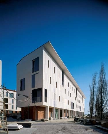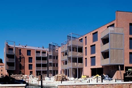 La varietà imposta simulava una processualità della crescita, o della trasformazione, simile a quella di una certa fase della città storica, aspirando a ricostituire, o soltanto a suggerire, una complessità sociale, economica, politica e quindi anche urbana. Nel caso del nuovo quartiere “Judeca Nova” tale intenzione è evidente nella scelta di affidare ad architetti diversi lo sviluppo del progetto urbano. Il risultato di tale sforzo sarebbe nulla più che corretto (ma a volte anche deludente), se non fosse per la presenza degli edifici di Cino Zucchi, cinque brillanti saggi, cinque variazioni sul tema “Venezia oggi”. La strategia è esplicitamente dichiarata e sviluppata con lucidità e intelligenza.