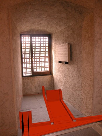 Il suo titolo, “Il giardino dei passi perduti”, molto ricorda della poesia di Italo Calvino e del suo Sentiero dei nidi di ragno. L’installazione gioca sul rapporto tra gli esterni e gli interni del Museo di Castelvecchio, restaurato da Carlo Scarpa nel 1956. Peter Eisenman segue il profilo dell’architettura antica, occupando il cortile esterno con un ‘paesaggio’ artificiale: composto da cinque volumi, sembra reagire ai tagli nei muraglioni del castello. L.B.