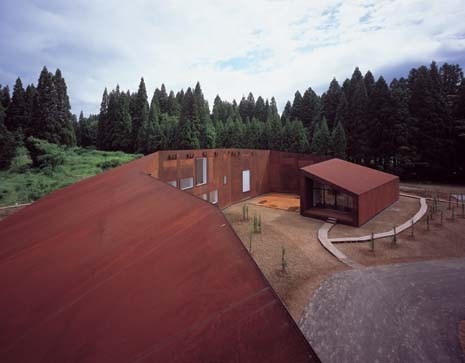 Il Museo delle scienze naturali di Echigo-Matsunoyama si erge sul placido declivio di una collina come un cobra in posizione d’attacco, la coda attorcigliata attorno a un minuscolo cortile ricavato tra i laboratori e la caffetteria, mentre la torre di osservazione vigila attenta sulla valle sottostante. Il parcheggio spiraliforme, opera dell’artista Tadashi Kawamata, si avvolge intorno al cortile frontale del museo, guidando i visitatori verso l’entrata. Per chiunque visiti questo bucolico angolo della prefettura di Niigata in un tiepido pomeriggio autunnale è difficile trovare una giustificazione alle 2.500 tonnellate di acciaio COR-TEN che formano l’epidermide e la struttura dell’edificio, ed è probabile che il tutto venga semplicemente liquidato come un ghiribizzo scultoreo dell’architetto.