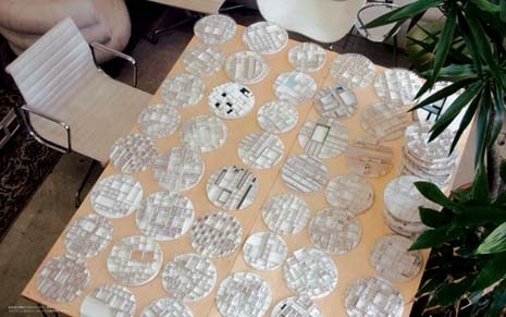 Le vere ragioni di questa architettura, tuttavia, diventano chiare se solo si sale sul tetto dell’orrendo palazzo comunale -una grande costruzione per uffici degli anni Sessanta che fronteggia il museo dal lato sud- e si nota come quello che si ha davanti non sia infatti un singolo edificio, ma puttosto un pezzo di città: un mosaico di palazzi per uffici e case unifamiliari, di vicoli e piazze, verdi parchi e centri commerciali… ma tutto in scala ridotta, come si trattasse di un campione prelevato direttamente dal caotico tessuto urbano della città di Kanazawa. Ci torna in mente l’immagine delle dozzine di modelli allineati con cura su un tavolo; modelli prodotti dagli architetti per studiare tutte le possibili combinazioni per gli interni del museo. È un po’ come se con un gigantesco stampino per biscotti fossero state prelevate varie parti della città scelte a caso, tagliando, riproducendo e sperimentando ciascuna configurazione spaziale fino a raggiungere un equilibrio perfetto.