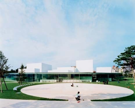 I condomini ospitano gli spazi espositivi, i corridoi di collegamento sono strade e vicoli che convergono in spazi aperti simili a piazze, una serie di corti aperte prende il posto dei parchi. Diventa improvvisamente chiaro che quest’ingannevole senso di continuità tra interno ed esterno è stato in verità congegnato con grande cura: i pannelli di vetro che segnano il punto di transizione diventano più una convenzione che una demarcazione, sono una linea in un diagramma, il luogo in cui la città vera termina per far posto alla città immaginaria inventata da SANAA. E per quanto sia risaputo che lo studio di SANAA produce per sua natura lavori programmaticamente schematici, la purezza della traduzione dal diagramma all’architettura è indubbiamente il segreto della vigorosa semplicità di questa costruzione. Situato nel mezzo di una grande piazza del centro di Kanazawa, il Museo d’Arte Contemporanea del XXI secolo è costruito su un sito occupato in precedenza da una scuola elementare; alcune strade che scorrono lungo i lati nord e sud impediscono agli edifici circostanti di usurparne il terreno, conferendo al complesso un senso di ariosità.