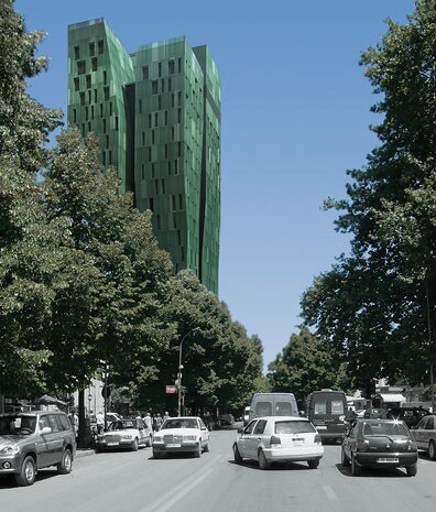 Anche con questo progetto, intitolato “4 ever green”, Marco Casamonti coniuga contemporaneità e tradizione: quella muraria delle torri storiche di Tirana, quella delle trame degli antichi tessuti regionali 'citati' nella texture che avvolge l’edificio. E.S.