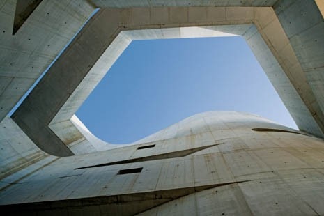 Questo belvedere rappresenta anche un punto di riferimento nella struttura urbana. Lontano dall’essere cavernoso persino oggi, l’atrio s’incurva per affacciarsi sul viale d’accesso, cinto da un sistema di doppie rampe collegate alle estremità con gli ascensori. Per niente interessato alla pianta libera e alla facciata, Siza non fa uso di una struttura convenzionale, ma condivide la predilezione di Le Corbusier – e di Wright – per i piani inclinati. Qui, quelli interni sono aperti a seguire la parete curva dell’atrio, mentre i sentieri pedonali esterni si liberano progressivamente e diventano un pretesto per generare un sorprendente atrio aperto. Da lontano, somigliano a un elmetto di Henry Moore posto dinanzi a uno splendido vaso che richiama vagamente Aalto. La loro goffaggine è sicuramente frutto di una scelta oculata, proprio come sia Lucio Costa, sia Lina Bo avrebbero suggerito: un richiamo al fatto che la perfezione non è di questo mondo, ma anche replica surreale dell’incantevole spontaneità del disegno di un bambino.
