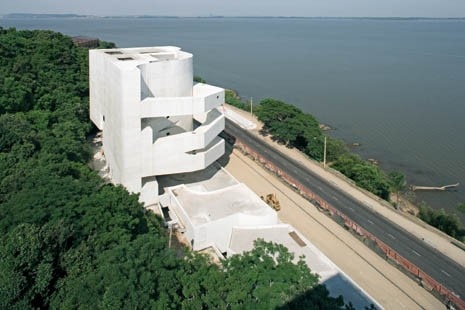 Iberê Camargo è stato uno dei più importanti pittori espressionisti brasiliani, e il museo della fondazione a lui intitolata, ormai prossimo al completamento, è il frutto della prima commissione di Álvaro Siza nell’ex colonia portoghese. Anche se gli interni sono ancora incompleti, l’edificio ha già modificato il profilo di Porto Alegre, metropoli della provincia brasiliana, a metà strada tra San Paolo e Buenos Aires, e sede della prestigiosa Biennale di arte latino-americana. Impeccabile nella realizzazione, la massa di cemento bianco si solleva dalla pianura tra i verdi pendii di un promontorio e il trafficato viale che costeggia il fiume Guaíba. Per quanto è dato di vedere, questo è Siza al massimo della forma, e ciò a dispetto delle opinioni di Richard Ingersoll: quando il progetto si è aggiudicato il Leone d’Oro alla Biennale di Venezia del 2002, il critico americano lo ha liquidato infatti come una “opaca versione dell’High Museum di Richard Meier, con un atrio cavernoso cinto da goffi passaggi interni” (http://www.techstrategy.com).