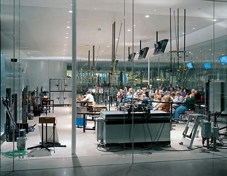 In una serie di seminari, Littleton e Labino provarono che era possibile produrre vetro soffiato anche in un piccolo studio, e iniziarono a tenere dei corsi per trasmettere ad altri artisti le tecniche che avevano sviluppato. Nell’intento di continuare la tradizione di ospitare workshop e seminari accessibili al pubblico, il museo ha commissionato una nuova struttura che sappia unire senza soluzione di continuità un ampliamento dello spazio espositivo, due fornaci per corsi di lavorazione e una serie di altri laboratori per artisti. Il padiglione, progettato da Kazuyo Sejima e Ryue Nishizawa (SANAA), è stato inaugurato lo scorso 27 agosto e soddisfa tutti questi requisiti, rendendo contemporaneamente omaggio alle qualità del materiale per il quale la città è famosa. L’edificio presenta una pianta rettangolare, mentre gli spazi interni sono organizzati secondo una griglia di circa tre metri, i cui angoli sono stati arrotondati per creare dei collegamenti tra celle adiacenti.