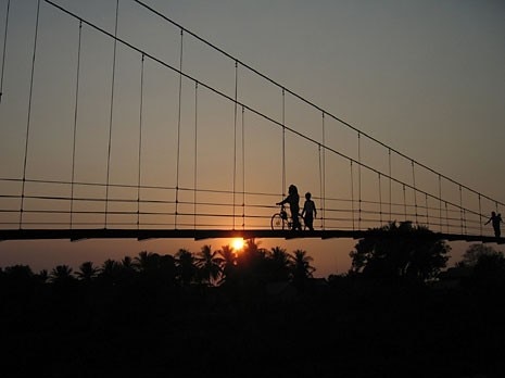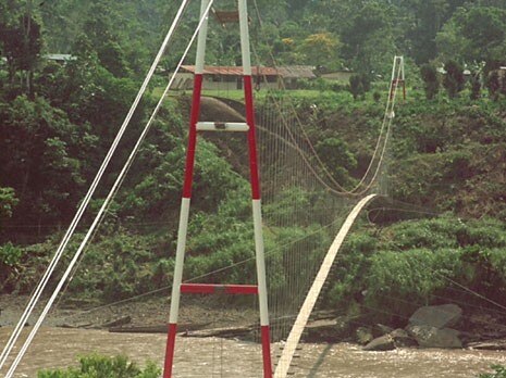 I ponti pedonali sono strutture sospese, analoghe a quelle realizzate per il flusso degli idrocarburi: due torri in tubatura saldata erette sulle due sponde opposte sostengono le catenarie, realizzate in cavo d’acciaio, alle quali sono agganciati gli impiantiti in legno, tagliato dagli abitanti in situ. Il materiale è composto da segmenti di condotti in acciaio recuperati dall’industria, trasportati con camion e spostati manualmente dagli abitanti. Negli ultimi anni il cavo d’acciaio è stato fornito dalle imprese svizzere di teleferiche, le tubature in acciaio dalla multinazionale Tenaris, controllata da Techint, ed il trasporto gratuito dalla compagnia marittima MSC di Ginevra.