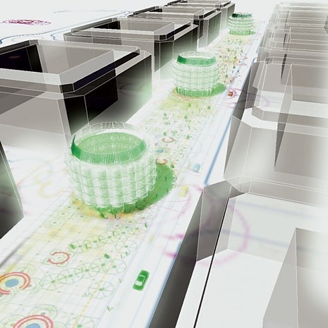 Del concorso, [ecosistema urbano] è risultato vincitore, avendo risposto con una soluzione dinamica e futuribile alle due finalità poste dal bando, riferito al viale principale di Vallecas: generare attività sociale e adattare dal punto di vista bioclimatico uno spazio aperto. Mirando a ottenere al centro del viale una fascia verde a vegetazione compatta nella prospettiva dei prossimi quindici-venti anni, i progettisti hanno fatto ricorso a un intervento d'urgenza. Hanno collocato lungo il boulevard, in mezzo a una piantumazione giovane, tre simil-gasometri, che fungeranno da punti di attrazione per la vita sociale del nuovo insediamento urbano, finora privo di luoghi pubblici d'incontro.