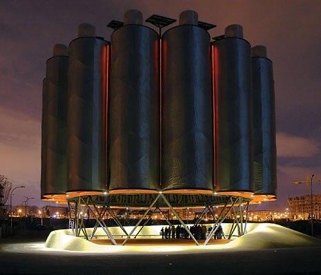 Il primo "albero d'aria" è nato dall'accostamento in circolo di sedici emicicli, rivestiti di un tessuto termico e sostenuti da una struttura leggera, di facile montaggio, che è identica per le tre grandi 'dinamo'. Dal punto di vista energetico, queste impalcature teatrali sono autosufficienti, affidandosi a un sistema di captazione solare fotovoltaica. Per il condizionamento climatico di questi spazi aperti, in una zona che soffre in estate di temperature elevatissime, è stato ideato un impianto di evaporazione e traspirazione.