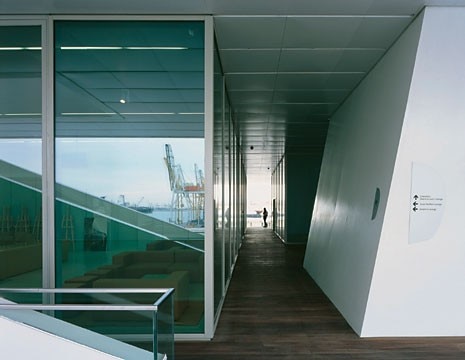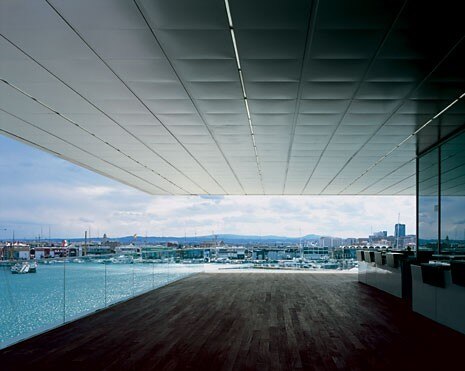 Eppure, con l'intervento di Chipperfield, Valencia ha già trasformato l'occasione in un risultato di assoluto rilievo: una vecchia area portuale, situata a ridosso del nuovo porto mercantile della città, è stata trasformata, grazie all'escavazione di un nuovo canale, che collega il bacino al mare, e alla riqualificazione del lungomare: in questo programma, ciò che più impressiona è proprio il padiglione su quattro piani che Chipperfield ha costruito come base e punto di riferimento per tutta la grande famiglia dell'America's Cup – per gli equipaggi, gli sponsor, gli armatori e gli ospiti di riguardo. L'edificio è stato originariamente concepito per essere inserito nella proposta presentata dalla città di Valencia per il concorso dell'America's Cup: il vincitore della scorsa edizione, la Svizzera, aveva diritto di assegnare la competizione a una località di propria scelta.