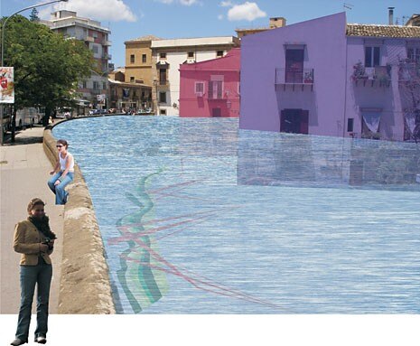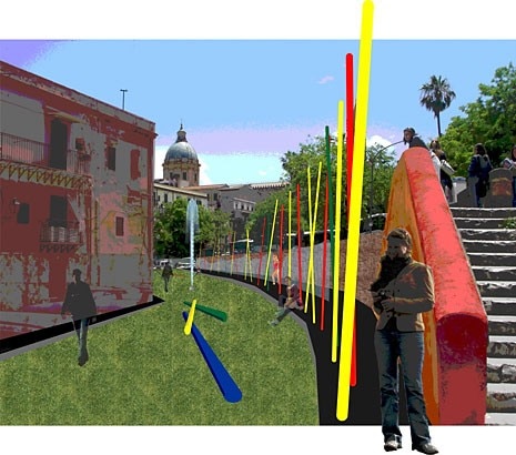 Obiettivo: trasformare la centralissima piazza del capoluogo siciliano (almeno idealmente) in una "spiaggia urbana". In un luogo estivo di ritrovo e aggregazione ideale proseguimento della vicina Accademia. Una quarantina le proposte, a metà tra arte e architettura. Tra queste, il "tetto d'acqua" di Tommaso Abbate (sotto, a sinistra) e il gigantesco Shanghai in plastica colorata di Alessandro Cannella (sotto, a destra). E.S.