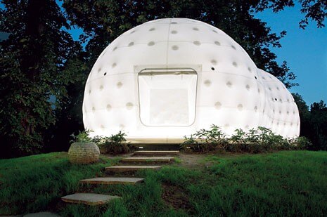 Più simile a un igloo che a una costruzione tradizionale giapponese, la Casa del Tè progettata da Kengo Kuma per il parco del Museum für Angewandte Kunst di Francoforte è un piccolo edificio gonfiabile dalla sagoma ameboide.