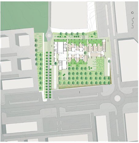 L'edificio per una Scuola Elementare e una Scuola dell'Infanzia si sovrapporrà al sito attualmente occupato da un uliveto. La pianta dell'edificio riprende la griglia di dieci metri formata dagli ulivi che segna la scansione della struttura principale. Anche la copertura del volume, formata da un'alternanza di piani a diverse inclinazioni, lascia filtrare la luce all'interno cercando l'effetto di luce e ombra creato dagli alberi.