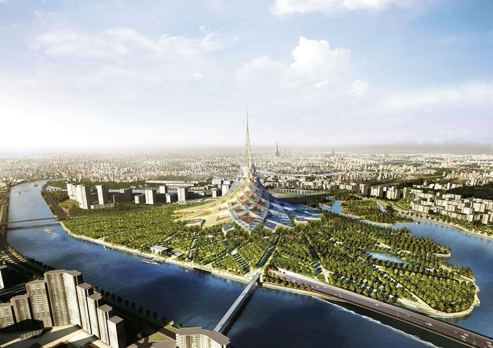 Foster and Partners ha prodotto quella che è probabilmente l'icona più contagiosa per le terre degli oleodotti: l'edificio elevato in altezza come tenda o microclima quale allusione ai movimenti nomadici nelle steppe della regione, nonché alimento di fantasie archeologiche radicate nella fantascienza o di prescrizioni per un design della redenzione. Per quanto finanziati dai petrodollari, questi edifici testano tecnologie verdi e offrono giardini interni a protezione dei rigori dell'inverno, dispensando anche, a titolo di bonus supplementare, iconografie vitaliste dell'architettura utopica del primo Novecento. Il progetto di Crystal Island, concepito per Mosca quale edificio più grande del mondo, adotta un'organizzazione molto simile a quella di Khan Shatyry, salvo il fatto che contiene quasi due milioni di metri quadrati di spazio interno e, coi suoi 450 metri, è alto più o meno il triplo. Sempre a Mosca, la Russia Tower di Foster and Partners presenta altri interni affetti da gigantismo e, poiché tocca quota 600 metri, si è guadagnata la definizione di "torre a ventilazione naturale più alta del mondo". Allo stesso modo, il Khanty Mansiysk in Siberia (280 metri) si presenterà come un microcosmo in forma di torre. I grandi progetti a tenda, la maggior parte dei quali completati nei prossimi anni, sono rappresentati con modalità affini, tra lo sfavillio dei raggi del sole e frecce hi-tech per indicare le speciali tecniche di ventilazione.