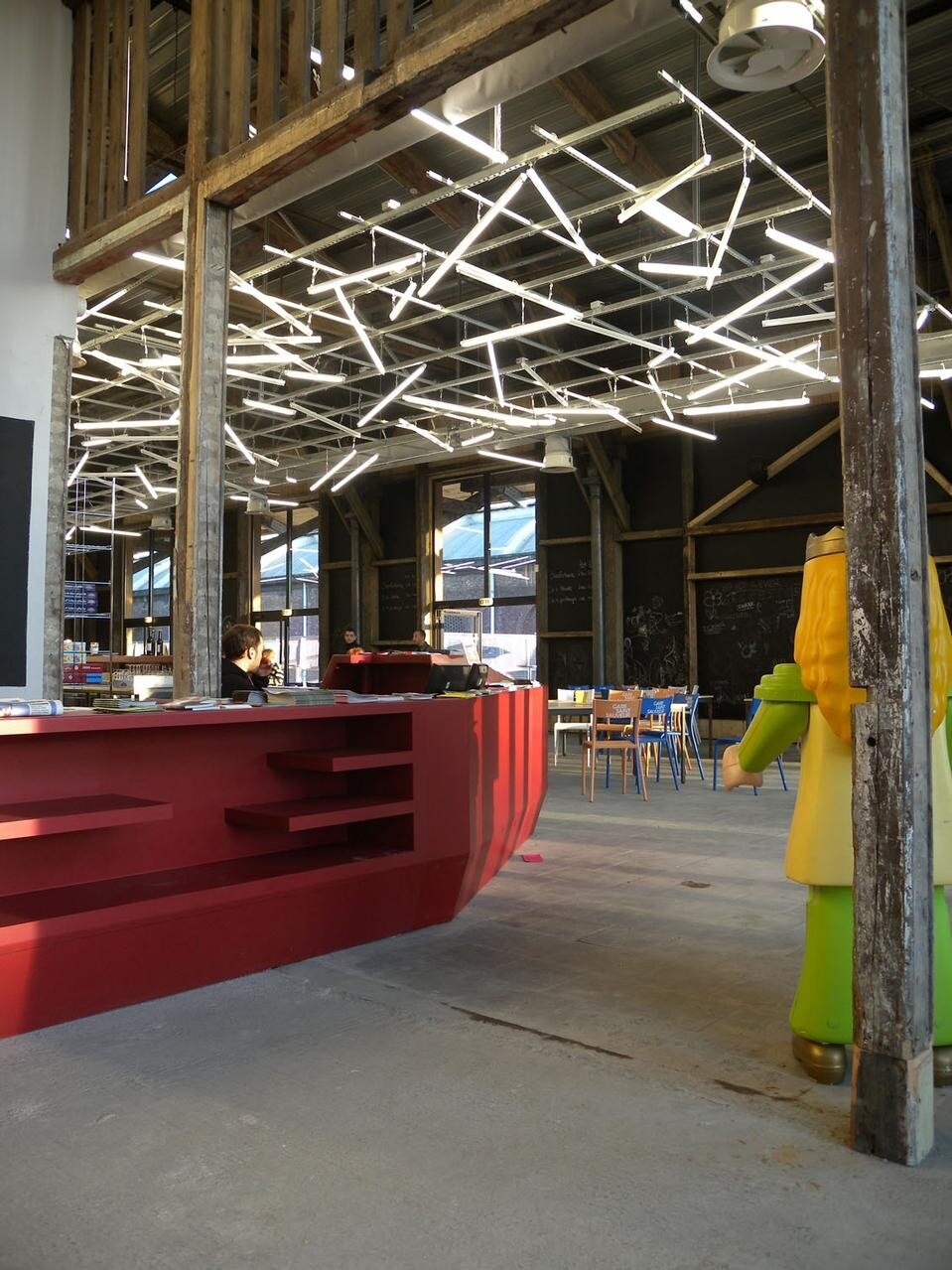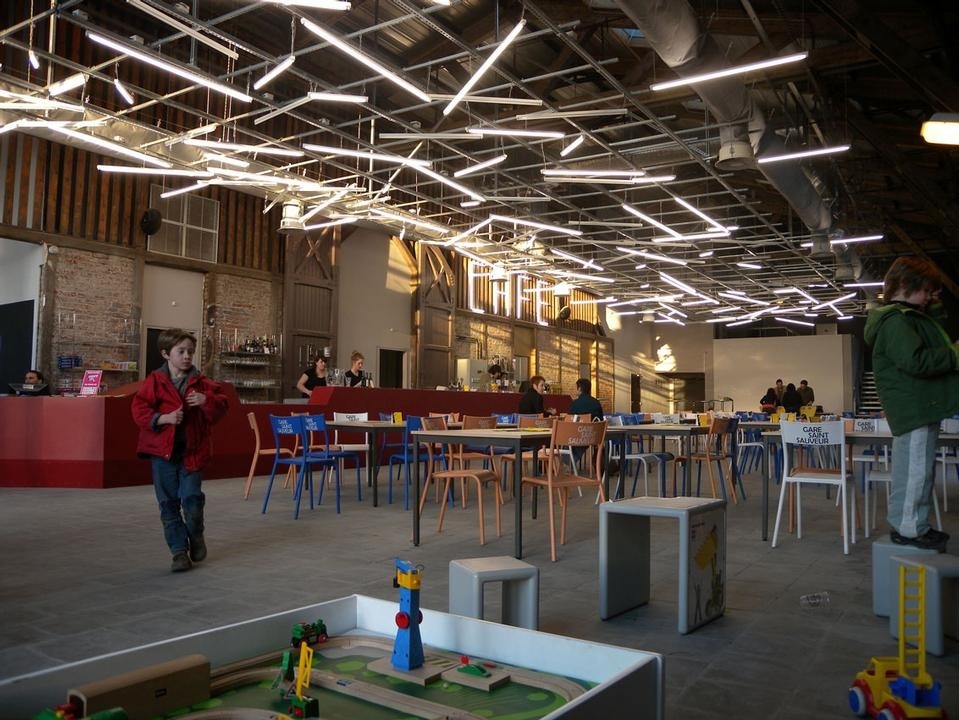 Azzi non abdica all'architettura, ma la interpreta con ironia: agli elettricisti che hanno installato i tubi fluorescenti nella brasserie, ha fornito unicamente un rendering: "Ho detto loro di ispirarsi al disegno, ma di appendere i tubi a loro piacere. Sono stato soddisfatto del risultato? Sí, certo". Anarchia, ma anche partecipazione pubblica: le pareti della caffetteria sono rivestite con grandi lavagne nere: ai bambini, libertà d'espressione. I politici hanno chiesto all'architetto uno spazio che fosse davvero per tutti. E che Azzi abbia raggiunto lo scopo, lo si avverte anche da alcuni dettagli inattesi: il bancone del bar, progettato in collaborazione con Robert Carr, si abbassa a formare un piano dove anche i più piccoli possono rivolgersi direttamente al personale. Laura Bossi