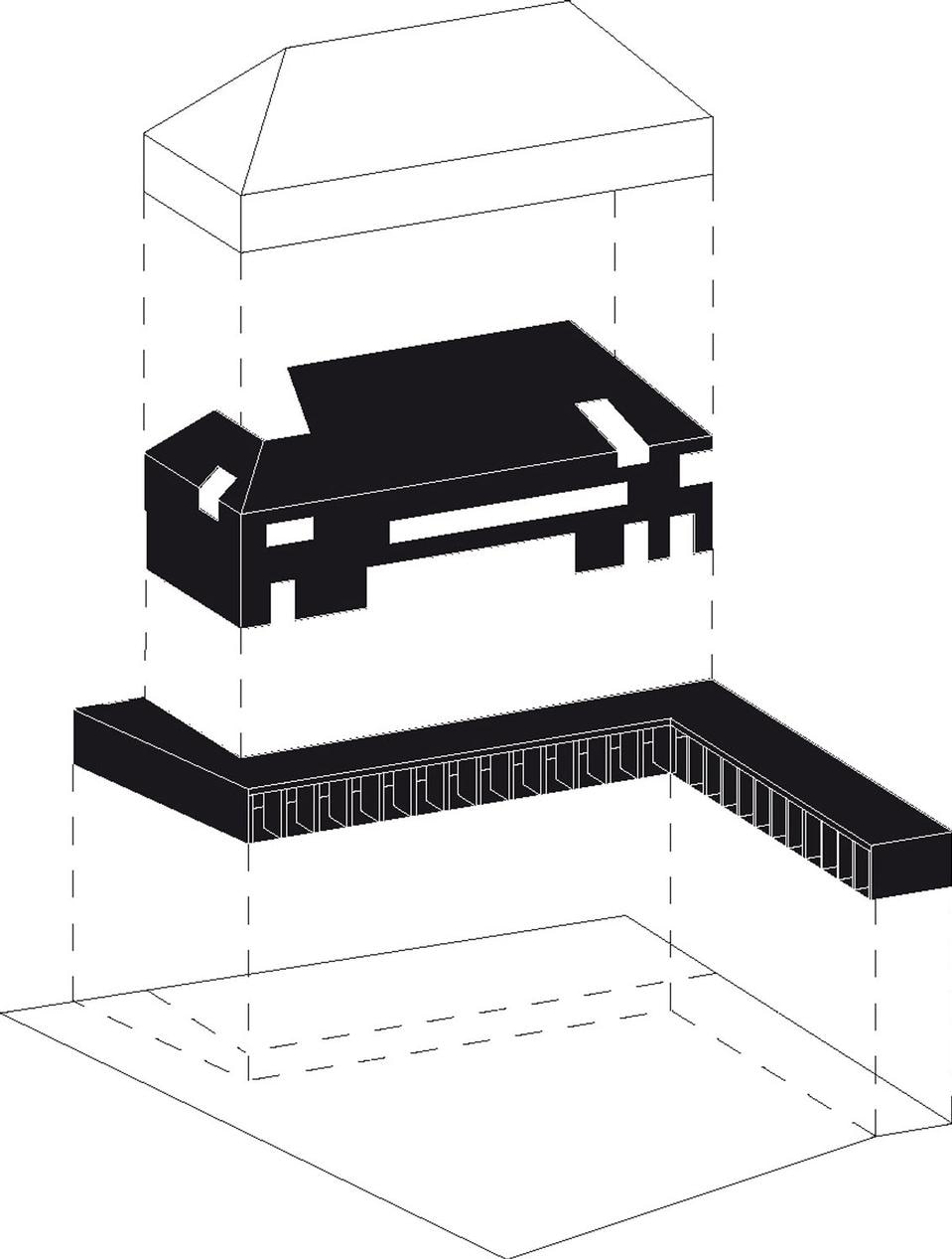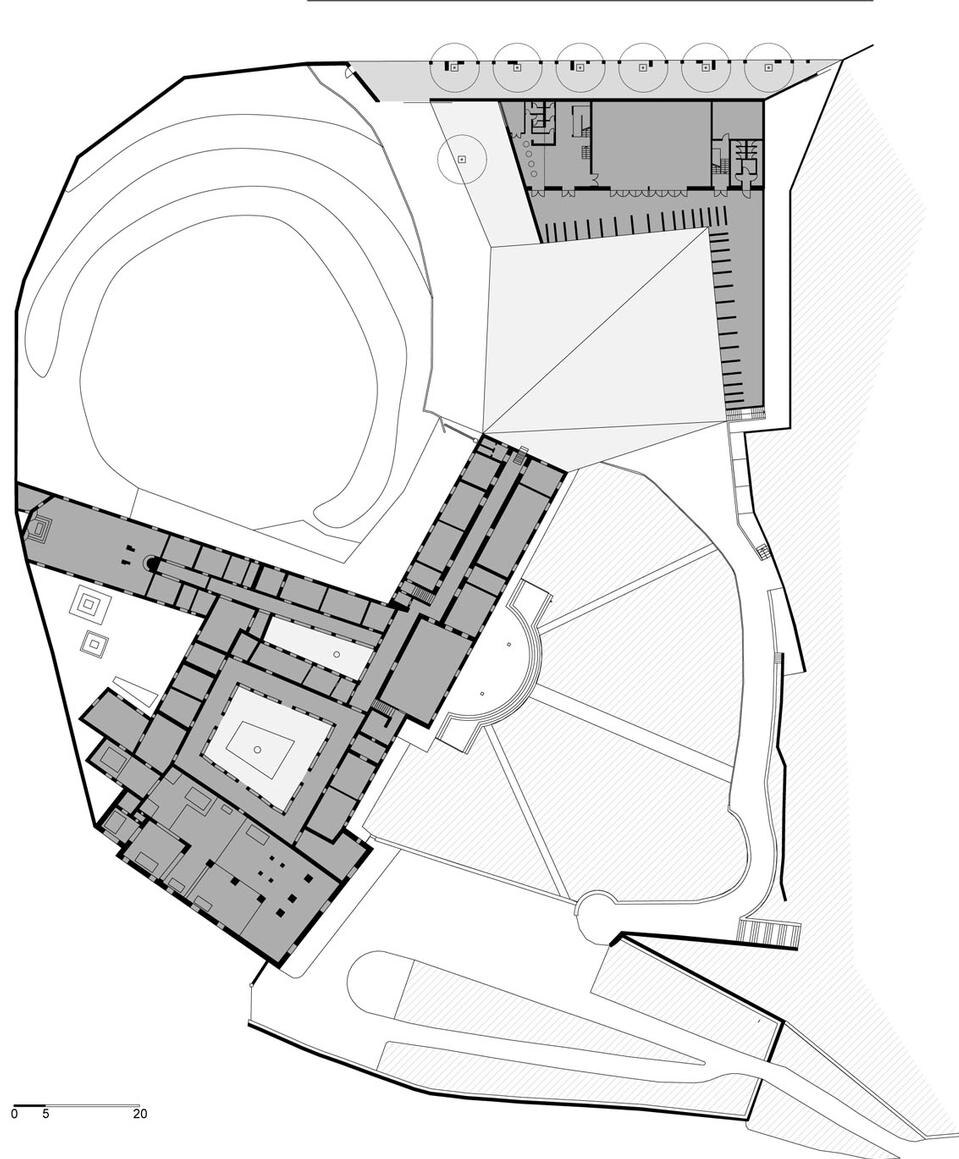 Di conseguenza il centro pastorale è sia oggetto sia spazio urbano, sia tempio sia agorà, e definisce un cortile che è luogo di raduno e di celebrazione per i pellegrini (che ammontano a migliaia il giorno dell'Assunzione), costeggiando e ribadendo la direzione del muro di pietra che cinge il sito. È tutta una questione di consapevolezza- la consapevolezza del funzionamento del muro di recinzione nell'organizzare l'esperienza stessa del pellegrinaggio; la consapevolezza della giustapposizione del muro antico e nuovo, degli antichi edifici della chiesa e del monastero e del nuovo spazio, che è insieme cortile e piazza urbana, con la sua cornice di portici, del distanziamento dei muri dei portici, che si allarga al centro e si contrae alle estremità- rendendo tanto evidenti quanto significativi le differenze e i rapporti reciproci. Organizzando e riconfigurando i rapporti tra i molteplici strati degli elementi costitutivi del luogo di pellegrinaggio, questa consapevolezza crea tra essi anche un altro spazio, un "terzo spazio"- un anfiteatro naturale scavato nella collina adiacente, che rende possibile celebrare messe all'aperto nei giorni di massimo afflusso di pellegrini.