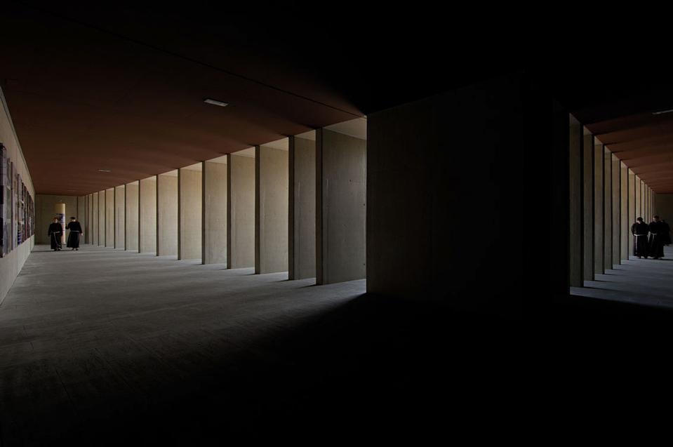 Al di là della formale retorica autoctona, che stimola la memoria e anima il luogo, il centro pastorale guarda esclusivamente al presente, all'uso e all'esperienza che combina la dimensione fisica con quella spirituale. L'esperienza dell'edificio e del più ampio complesso è attentamente calibrata in termini di transizione dalla luce all'oscurità, dalla piazza soleggiata al portico ombreggiato, dal culto collettivo alla contemplazione individuale. In diversi momenti il portico funge da chiostro ombreggiato, in altri, per esempio, quando la piazza si riempie di pellegrini, le profonde campate separate da lastre di calcestruzzo disposte a varia distanza l'una dall'altra si trasformano facilmente in estemporanei confessionali.