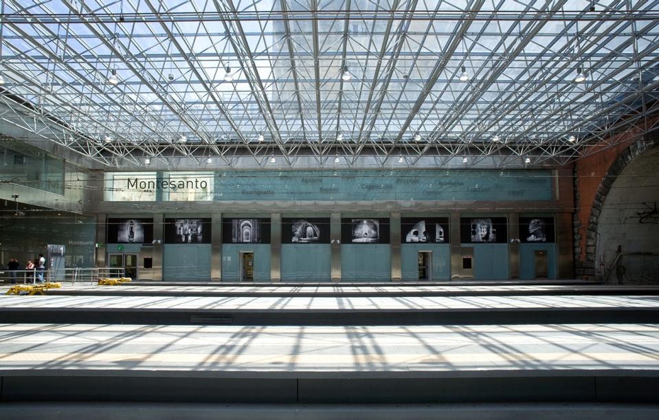 Il percorso archeologico, non sempre noto, attraversato dai treni della celebre linea regionale della Cumana, è presentato e integrato al sistema delle facciate interne dell'area banchine con sedici foto dell'artista Mimmo Jodice.