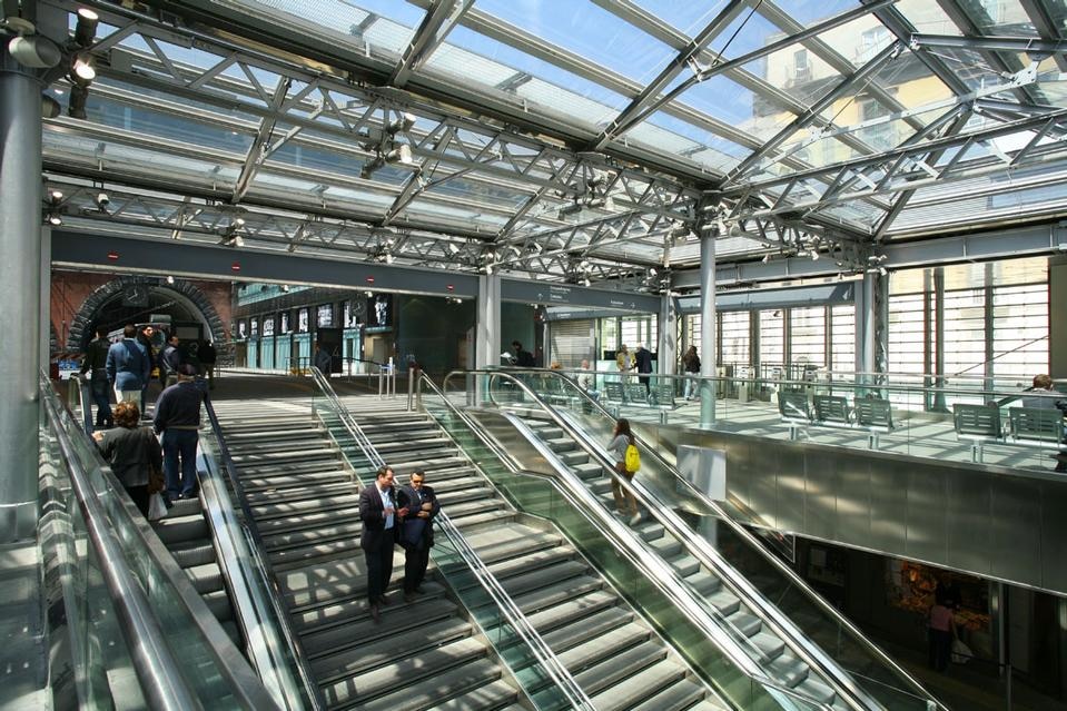 Il nuovo polo di scambio è stato concepito come un volume unico in grado di facilitare e razionalizzare l'insieme delle connessioni multimodali tra la metropolitana, i treni regionali, la funicolare e i taxi.