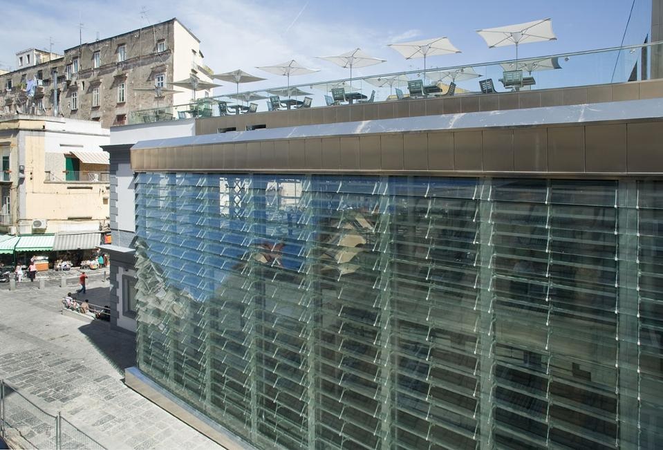 Nuovi elementi in acciaio e vetro sono stati introdotti: la copertura vetrata di circa 1000 mq dell'area banchine, la hall a doppia altezza di ingresso alle banchine e la facciata porosa della funicolare con franagisole in vetro.