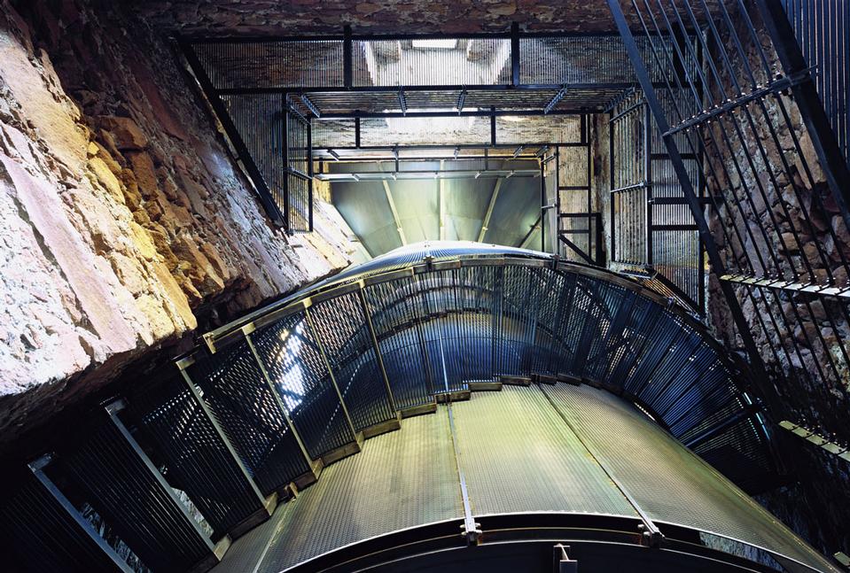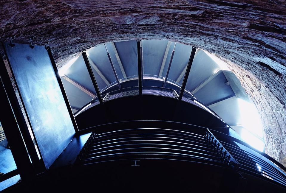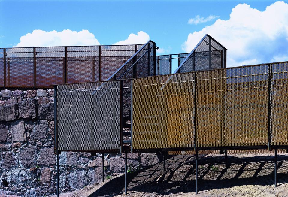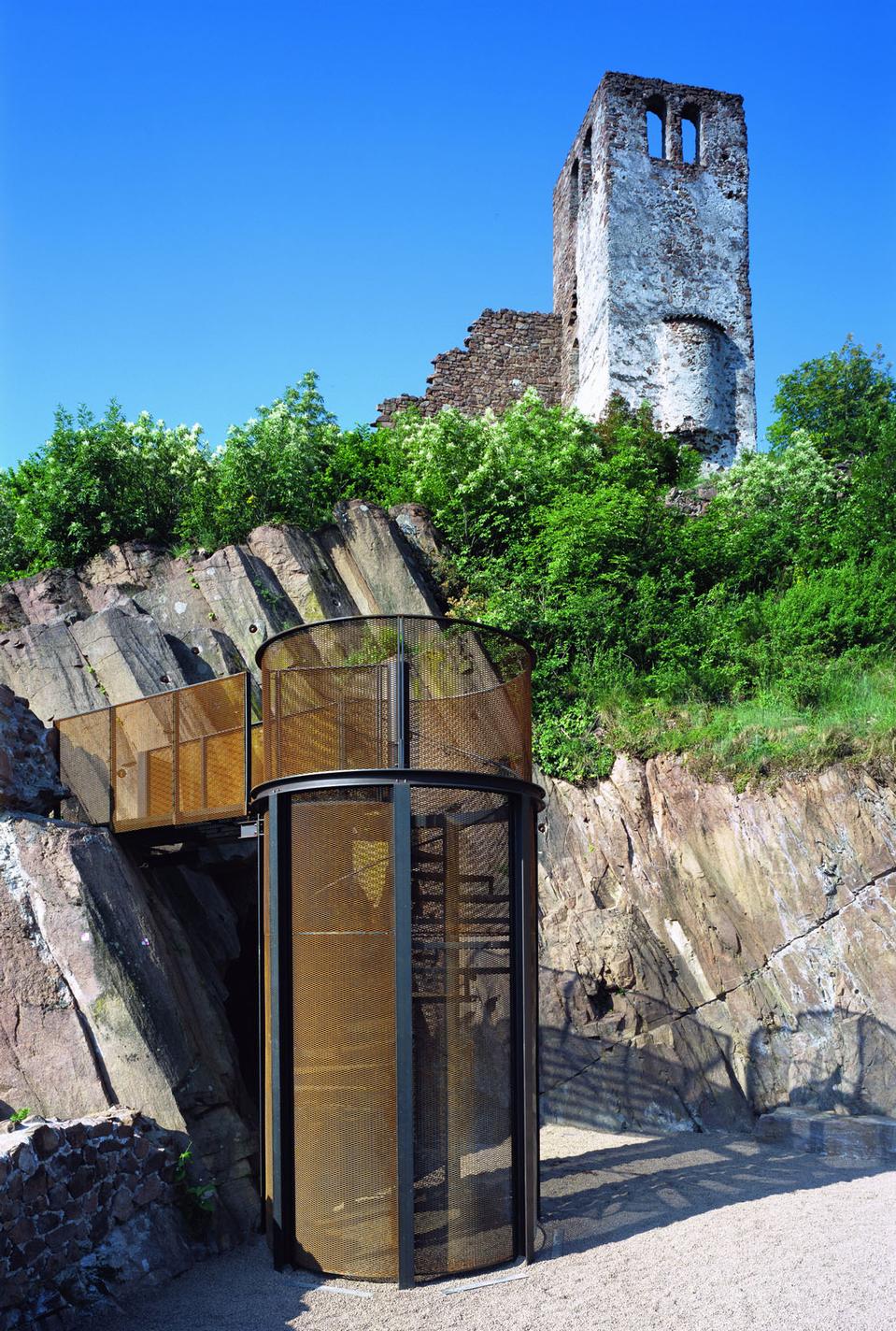Nei torrioni cilindrici meridionali sono state sospese strutture metalliche staccate dalle mura esterne. L'acciaio lucidato a cera arretra di fronte al forte risalto della luce radente, che sfiora le mura in pietra. Al termine del percorso museale, un pozzo scavato nella roccia collega tra di loro il cortile meridionale del castello e la torre del portone, punto di partenza del circuito di visita. Il magistrale recupero architettonico della rovina del castello può forse contribuire a riaprire questo importante accesso alla storia contemporanea.