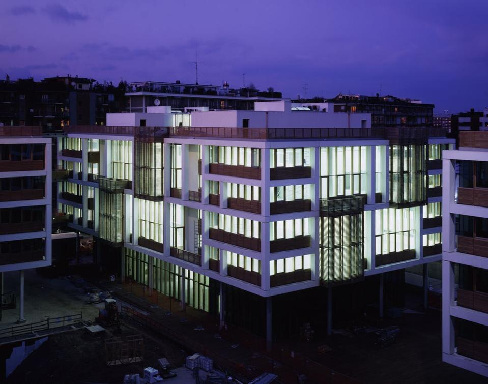 La struttura architettonica è formulata a partire dalla sua specifica posizione in una zona interna della città destinata a usi misti. L'architettura vuole rispondere a questa pluralità potenziale. Gli edifici sono costruiti su sei livelli e combinati in unità strutturali a doppia altezza (H = 7 m). Ogni unità è progettata a pianta aperta, con un mezzanino che offre la massima elasticità tridimensionale in funzione di una ventaglio di destinazioni: loft, studi, negozi, ristoranti e uffici troveranno spazi pronti a essere progettati su misura per i loro scopi specifici. Destinazioni miste che culminano, sulla copertura piana, in un giardino pensile con piazze interne che permettono alla vista di spaziare sull'orizzonte.