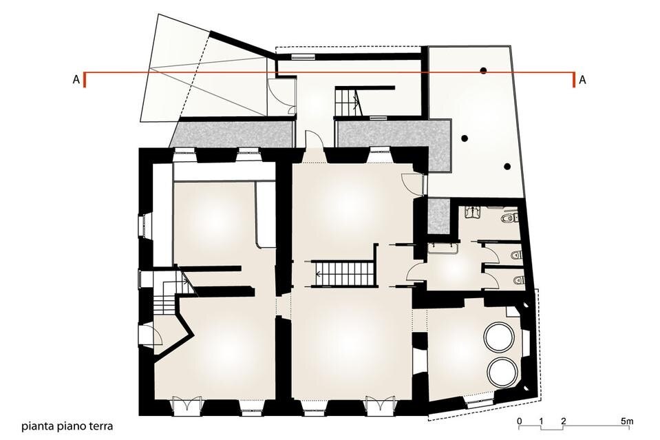 La parte museale è dislocata al piano terra, dove le tracce delle passate funzioni sono significative. Particolare rilevanza è stata data alla disciplina degli accessi: si voleva che a ogni funzione corrispondesse un proprio ingresso. Questa scelta ha generato l'idea della scala esterna che porta alla sala riunioni posta al primo piano, sala riunioni non oggetto del presente appalto.