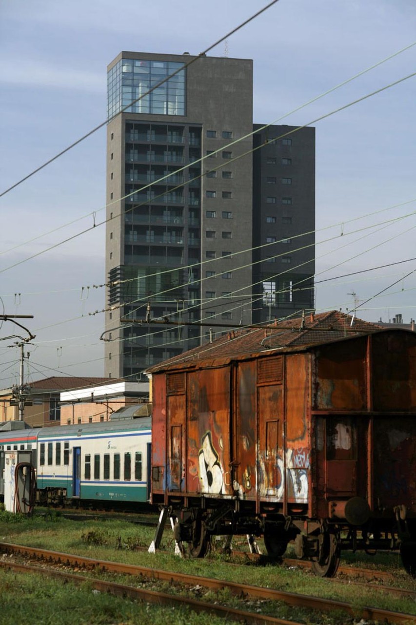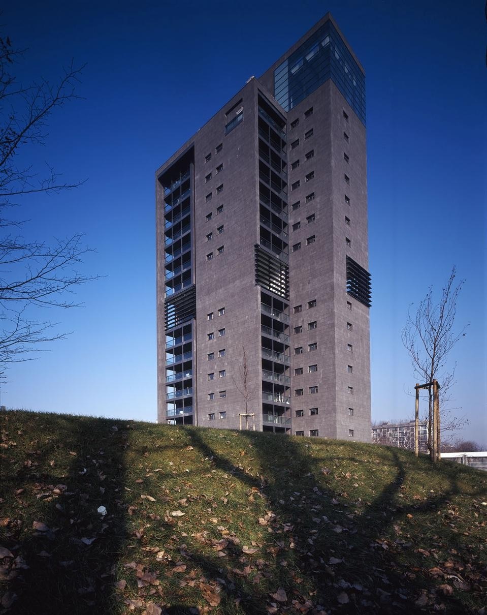 La verticale diventa il segno espressivo per valorizzare le qualità di questo luogo. Una fessura alta 50 e larga 2.5 metri attraversa in altezza tutto il corpo di fabbrica dell'edificio secondo la direzione est-ovest: un taglio che si lascia attraversare dalla luce e dalla vista, un segno che restituisce in verticale le tracce territoriali presenti nell'area (Naviglio Grande e ferrovie) e lascia intendere, nella trasparenza, una continuità fra lo spazio pubblico di piazza Tirana e il giardino pubblico alle spalle della torre.