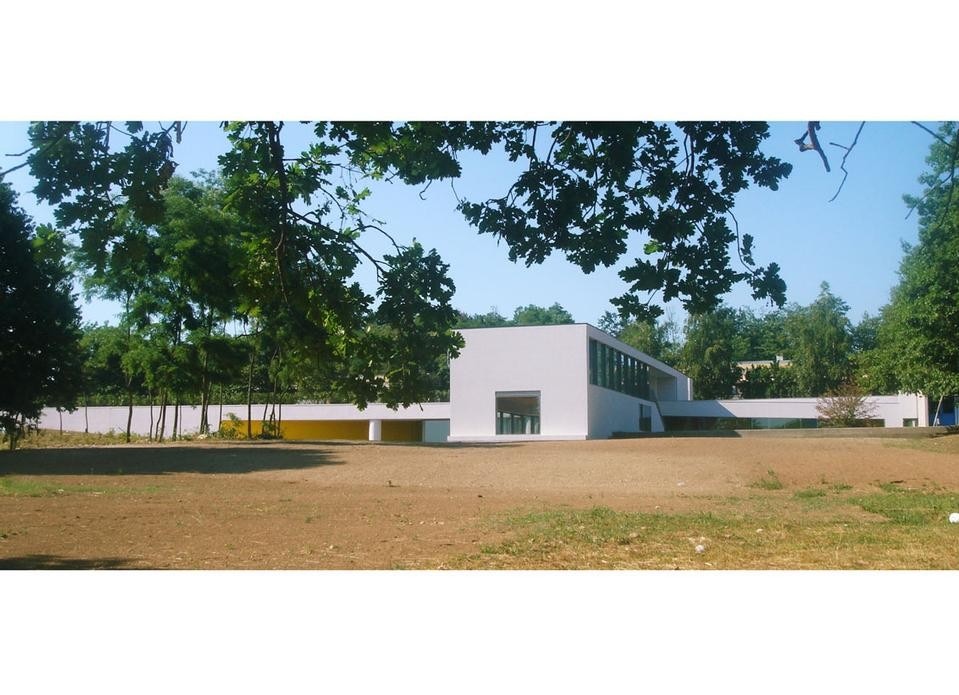 La natura del terreno, l'andamento altimetrico e il programma funzionale hanno determinato la scelta di interrare il volume della palestra al fine di mantenere inalterato l'attuale spazio per il gioco all'aperto dei ragazzi.