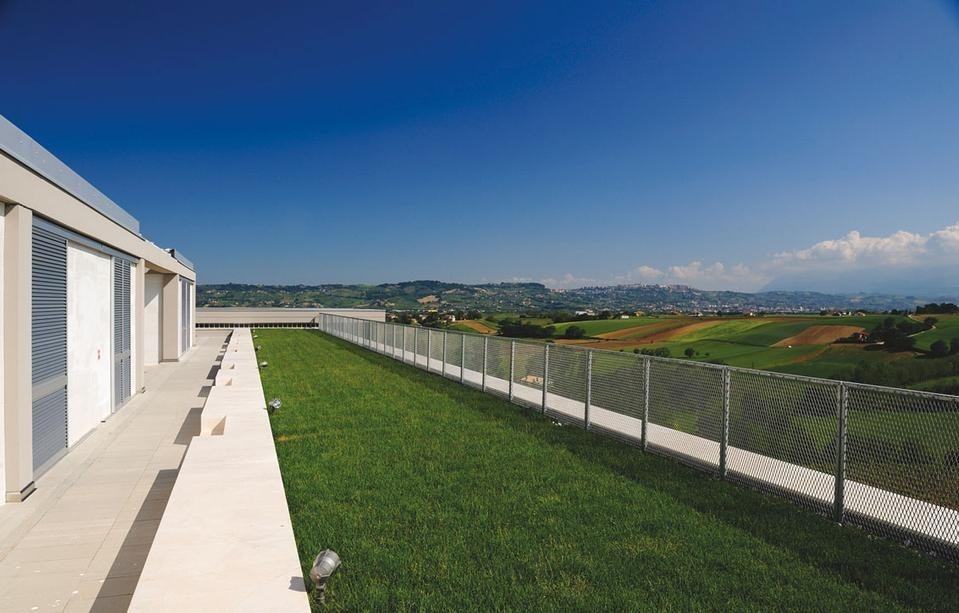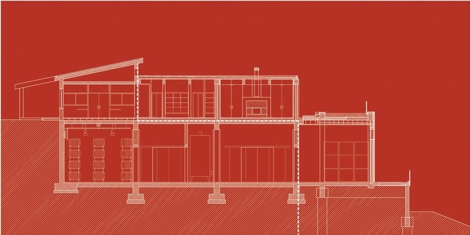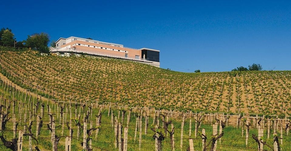 Per curare il rapporto tra architettura e paesaggio si è privilegiata la costruzione di un sistema di padiglioni che si inserisce nella struttura preesistente ricucendo vecchie e nuove costruzioni con una pergola realizzata con la stessa orditura strutturale: l'obiettivo era realizzare una sorta di promenade architecturale che "abitasse il paesaggio" e se ne appropriasse riproponendo un frammento attraverso la fascia di giardino-pensile sulla copertura del nuovo volume costruito. Sia i vecchi che i nuovi volumi sono stati isolati termicamente con sistemi passivi al fine di realizzare le condizioni ottimali per la stagionatura del vino.