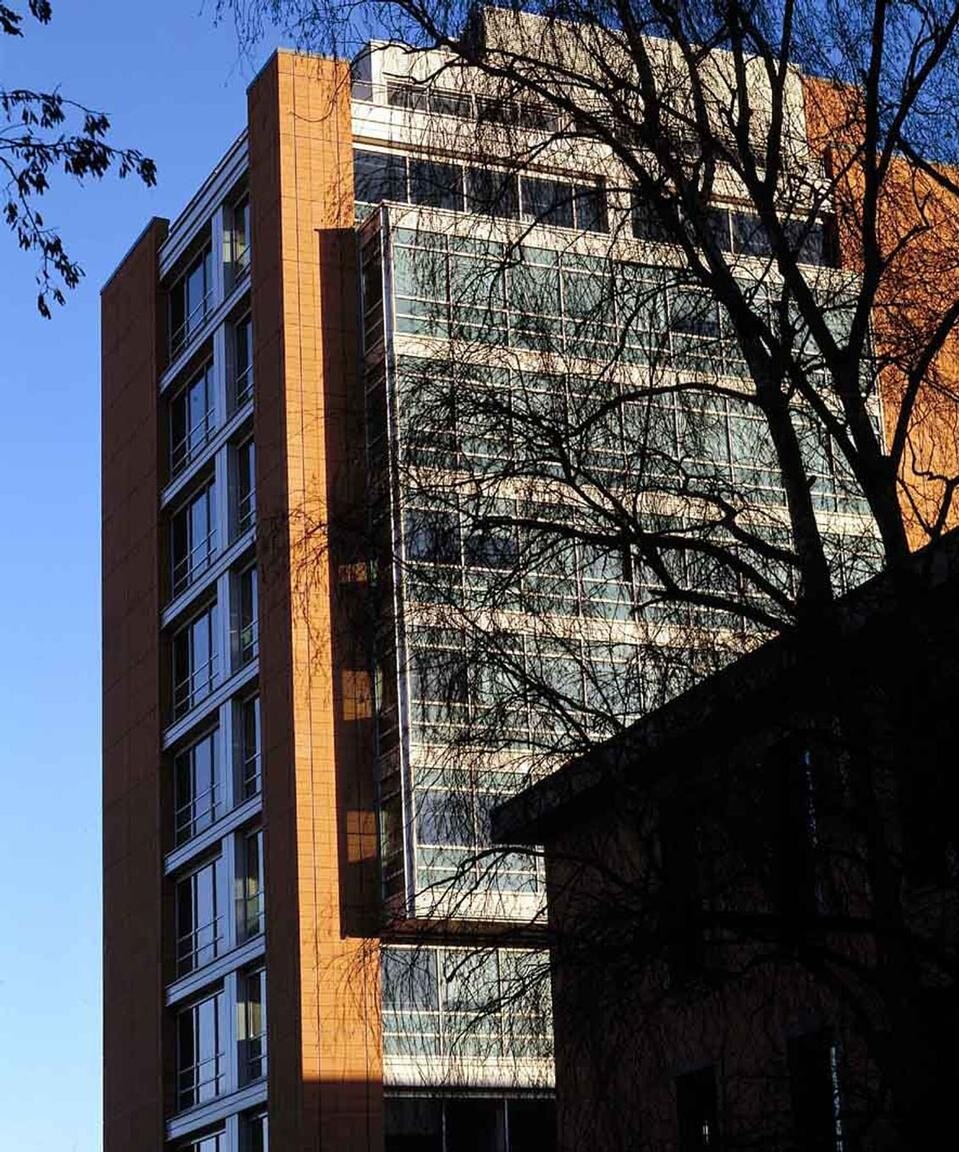 L'edificio b realizzato tra il 2005 e il 2007, su circa 4.000 mq, riprende il tema della prima torre ma si articola in due corpi distinti: un corpo basso rivestito in travertino con finestrature profonde incassate nella muratura a riprendere il filo di gronda degli edifici esistenti su via Russoli e un corpo a torre di sette piani rivestito in lastre di cotto bruno con una facciata a doppia pelle a protezione del fronte sud.