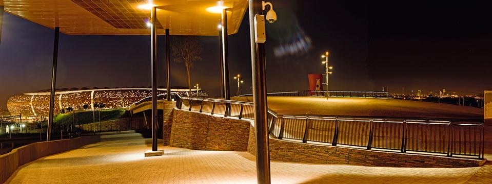 L'area adiacente allo stadio, tuttavia, rimane largamente poco sviluppata e i suoi plinti sono circondati da dune di sabbia e veldt – terreno incolto – oltre che da file di tende, container e recinzioni che fanno tornare in mente l'originale cittadella mineraria. La presenza della FIFA è un velo effimero che va e viene nel breve volgere di un mese: una cittàevento costruita intorno alla comunicazione, alla finanza e ai grandi marchi internazionali. Si tratta di una 'festivalizzazione' dello sviluppo urbano, al tempo stesso, contemporanea e controversa, accompagnata da una crescente preoccupazione da parte dell'opinione pubblica riguardo a come strutture di prestigio vengano realizzate rapidamente per un grande evento ospitato da un paese in via di sviluppo, nel quale, però, gran parte dei bisogni, in termini di infrastrutture di base, rimangono senza risposta.