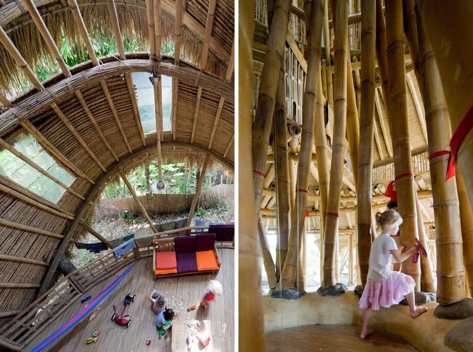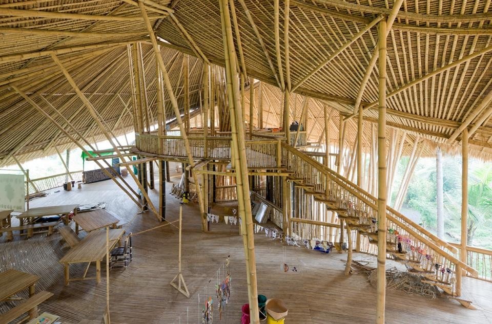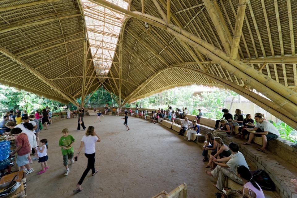Nei limiti inerenti al materiale, fioriscono le variazioni di ordine formale. Nel suo Essai sur l'architecture, Marc-Antoine Laugier postulava l'idea che le radici di ogni tipo di architettura vadano individuate nella capanna primitiva, fatta di tronchi e rami d'albero. Il frontespizio del volume conteneva un'incisione raffigurante la dea dell'architettura che indica una struttura intesa a esprimere tale verità: "L'arte", dichiarava Laugier, "è nata imitando la natura". Ponendosi su questa stessa linea, il progetto ispira una cultura di creatività localizzata, opposta alla fabbricazione high-tech. Come un artigiano costruisce basandosi su poche, semplici tecniche per poi svilupparle in infinite iterazioni, la costruzione della Green School è più vicina alla mano che intreccia un tessuto: uniforme nel materiale, sofisticata nella composizione.