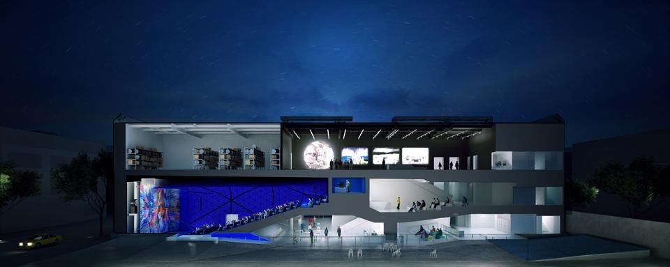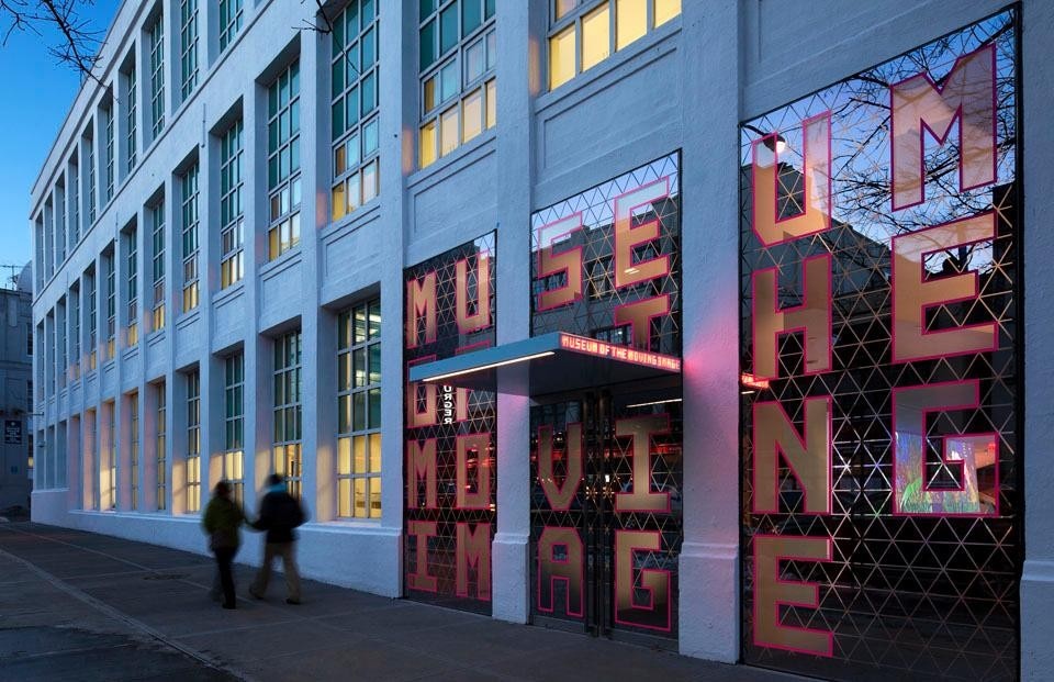 Quando si entra nel museo, da poco riaperto, "si entra in un mondo alternativo: il mondo del cinema", afferma Leeser. Situato nel quartiere in piena fioritura di Astoria, nel Queens, il progetto rappresenta una delle rare occasioni in cui un'estetica da fantascienza d'ispirazione digitale non si rivela gratuitamente bizzarra ma realmente appropriata. La struttura originaria, risalente agli anni Venti, era stata costruita come studio di produzione della Paramount. Benché la sua atmosfera industriale si adatti con naturalezza a una collezione museale di ciò che sta "dietro lo schermo", faceva ben poco per amalgamare i vari oggetti di scena, gli spezzoni d'archivio, i proiettori d'epoca e gli altri accessori fisici con l'onnipervasivo artificio dell'immagine in movimento cui appartenevano.