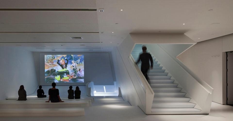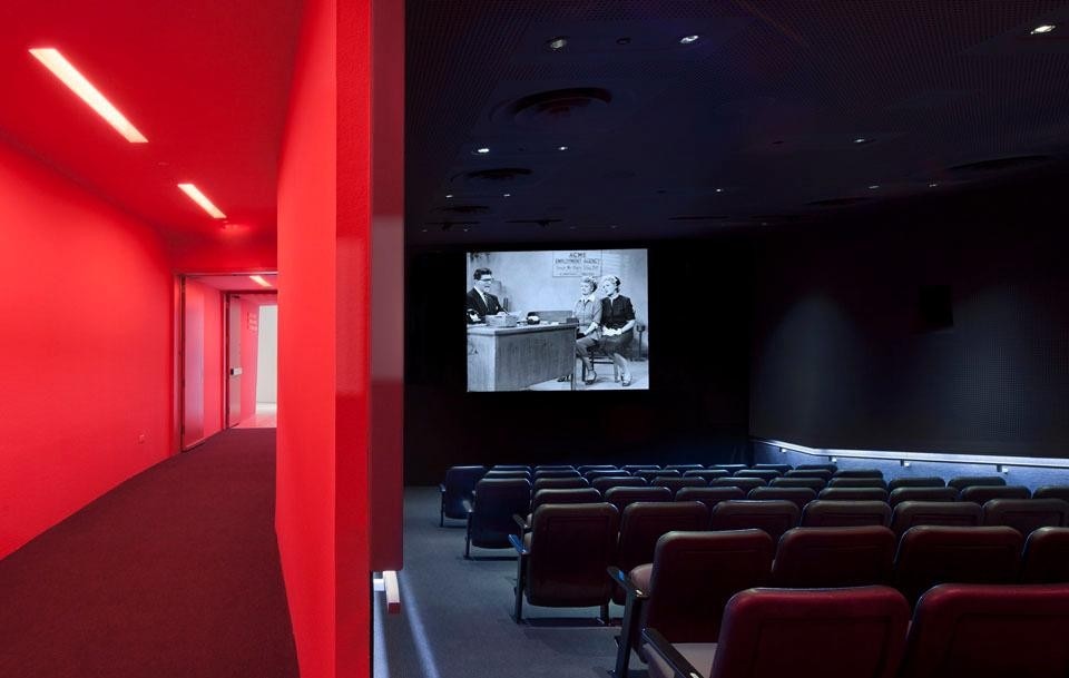 L’ampliamento, innestato sulla parte posteriore dell’edificio originale, è assolutamente geometrico e levigato, e assorbe l’astrattezza dell’immagine filmica nel corpo dell’architettura