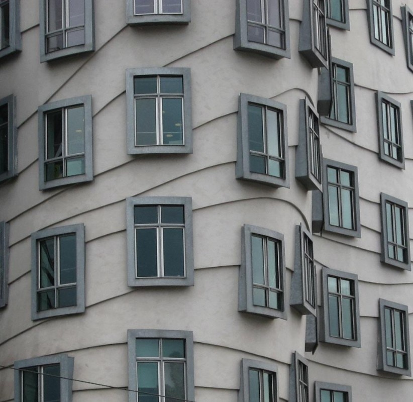 A proposito dell'opera di Frank Gehry è possibile osservare una discrepanza a paragone con l'opera dell'architetto modernista Adolf Loos. Gehry, celebre per la stravaganza della sua estetica formalista, può essere considerato l'antitesi assoluta di Loos, il cui fondamentale saggio teorico Ornamento e delitto [1] stigmatizzava l'uso superfluo di ornamento e decorazione negli oggetti d'uso. Ma a uno sguardo più attento in entrambi c'è una notevole analogia nell'uso del familiare e consueto elemento della finestra. Il metodo di Loos nel progetto della finestra in quanto componente d'architettura diventa una lente, in senso letterale, che consente una più ampia discussione dell'uso sintomatico che Gehry fa della consueta forma rettilinea identificabile come finestra nelle sue più straordinarie soluzioni formali. Il che suscita una domanda: può un architetto progettare edifici che siano contemporaneamente consueti eppure originali, tradizionali eppure contemporanei? O si tratta semplicemente di una contraddizione in termini? Di un groviglio di prassi e fantasia?