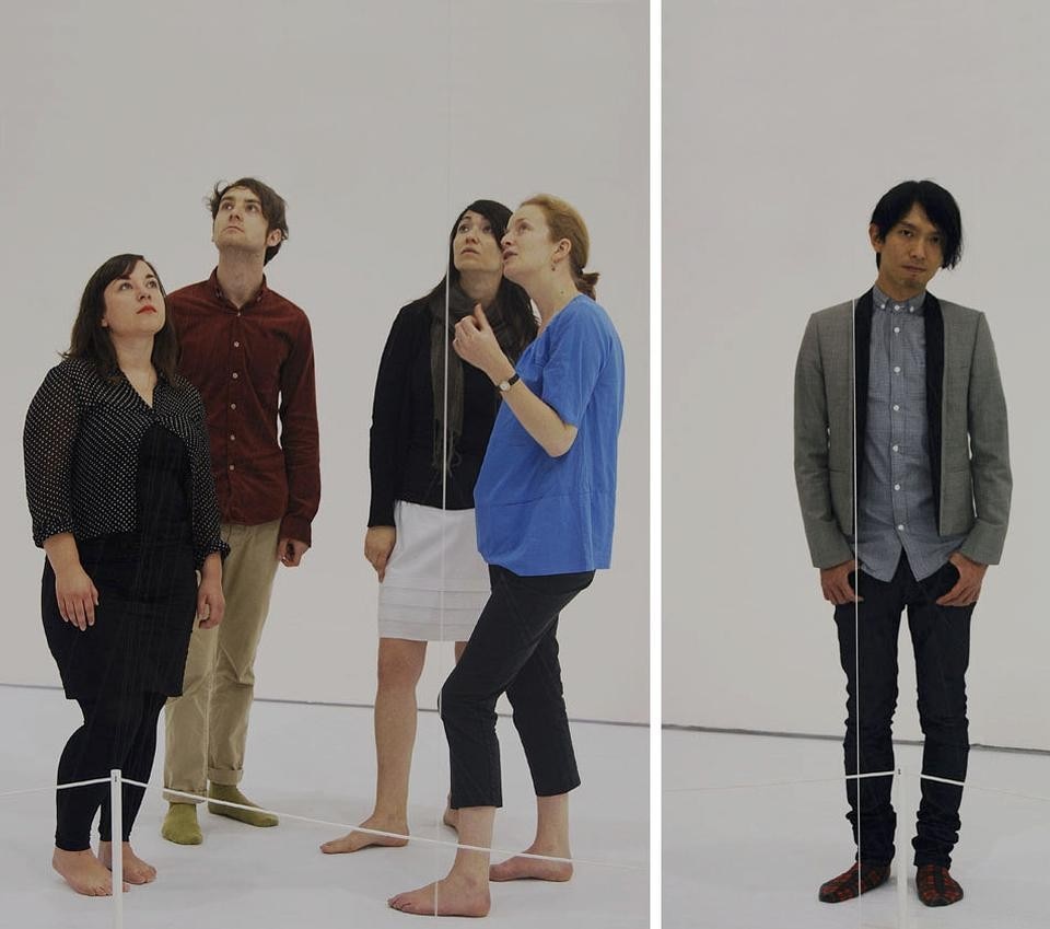 I numeri possono stupire, e il rispettoso silenzio pare insito nella stessa esperienza della visita. All'ingresso nello spazio della galleria viene cortesemente chiesto di togliersi le scarpe, e anche i soprabiti pesanti, le borse e gli accessori ingombranti che potrebbero inavvertitamente interferire con la ragnatela dell'installazione. Ancora fresco nel ricordo, ovviamente, il bestiale sabotaggio dell'anno scorso; e anche qui la delicata struttura ha dovuto subire almeno un attacco umano prima dell'inaugurazione. Ma malumore e numeri vengono messi da parte insieme con le scarpe e i soprabiti; quando si scende scalzi al livello della galleria, mentre gli occhi si adattano al biancore, fragili linee emergono lentamente dal pallore. L'impulso ad alzare lo sguardo verso la delicata ragnatela dei cavi si accompagna all'invito a percorrere la lunghezza dello spazio, reso intimo dall'installazione di Ishigami.