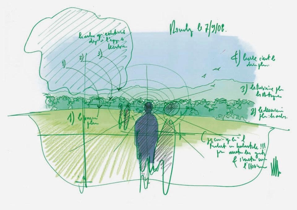 A Ronchamp il tema non è il confronto con Le Corbusier, che rimane un dato, non un punto di paragone. Il tema è come governare le trasformazioni che riguardano la società e i cambiamenti culturali. La Cappella, oggi, non è il romito pellegrinaggio di mezzo secolo fa, perché il suo carisma di opera d'arte ne ha cambiato la percezione e le attese del visitatore. Ritenere che si possa salire la collina oggi come lo fece nel giugno 1950 Le Corbusier è ingenuo, oltre che falso. È qui comunque che si misura l'utilità o il danno del progetto per la vita. Cercando, cioè, di creare una condizione di equilibrio che tiene conto del rispetto del luogo, ma anche dei suoi nuovi modi d'uso, in modo da evitare a Ronchamp proprio il destino di 'caravanserraglio' temuto da Corbu.