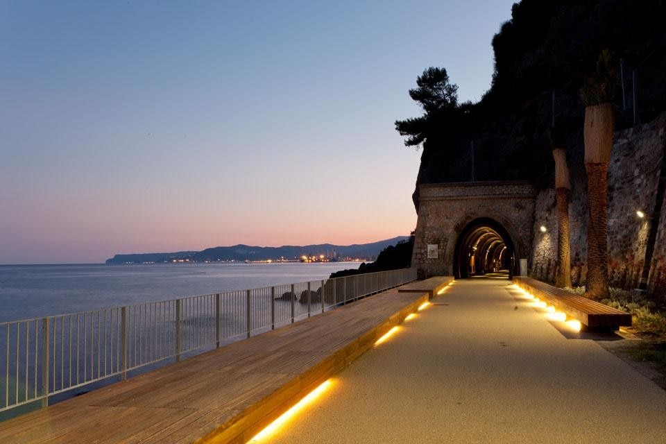 L'intervento riguarda la riqualificazione di tutto il tratto della sede dismessa della ferrovia tra Albisola Superiore e Celle Ligure (SV) e la trasformazione in passeggiata pedonale. Sono stati realizzati percorsi naturalistici, punti panoramici, una passerella a sbalzo in corten e legno e il completo recupero della galleria ferroviaria che è diventato un vero e proprio "contenitore" per mostre d'arte.