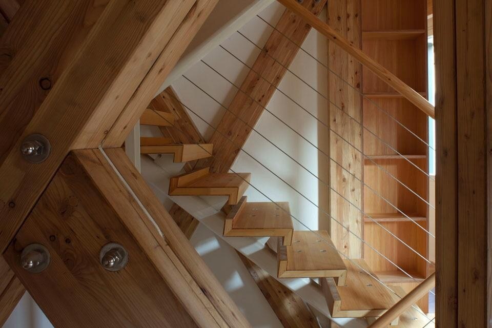 È un intervento nel quale l'approccio artigianale riveste un ruolo importante: l'edificio esistente è stato, infatti, completamente svuotato, per andare poi ad accogliere una nuova struttura lignea prefabbricata. Presente e passato vivono così in parallelo: all'antica muratura in pietra si affianca uno scheletro di legno lamellare di larice, dotato di un'anima metallica, che si sviluppa per tutti i quattro piani dell'edificio.