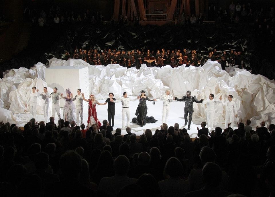 In un avvio coerente, il Don Giovanni riunisce un celeberrimo gruppo di creativi di Los Angeles. L'architetto Frank Gehry torna alla Walt Disney Concert Hall – l'edificio paradigmatico del suo stile progettuale, che non solo ha cambiato Los Angeles, ma è oggi una delle più apprezzate strutture architettoniche d'America – per creare un'ambientazione pensata unicamente per questa sala.