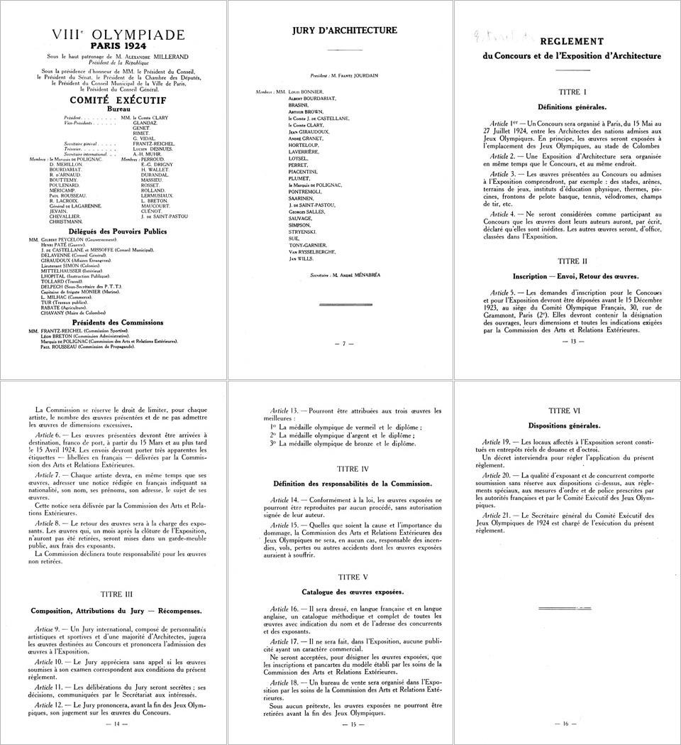 In una lettera datata 2 aprile 1906, il barone Pierre de Coubertin si chiedeva "in quale misura e in quale modo si potrebbero includere l'arte e la letteratura nella celebrazione delle moderne Olimpiadi"?. Descrivendo in maniera più dettagliata le proprie intenzioni, aggiungeva che "negli antichi giorni di Olimpia, le arti accompagnavano armoniosamente i Giochi olimpici per creare la loro gloria. Ed è a questo che si deve tornare". Il barone de Coubertin aveva riportato in vita da solo i Giochi olimpici pochi anni prima, quando, nel giugno del 1894, si aprì formalmente il Congresso olimpico e venne ufficialmente—e unanimemente—approvata l'istituzione dei primi Giochi dei tempi moderni. Per ridestare pienamente lo spirito delle Olimpiadi che si erano tenute molti secoli prima—una celebrazione di corpo e spirito—, il barone immaginò un evento globale, che attribuisse uguale valore alle competizioni sportive e alle arti, come la pittura, la letteratura e, persino, l'architettura. A questo scopo, invitò il Comitato Olimpico Internazionale (CIO) a esaminare un certo numero di temi di alto valore educativo. Dopo aver felicemente discusso l'integrazione di istruzione e scienza in due incontri precedenti, de Coubertin volse la propria attenzione alle arti. L'argomento ufficiale del Congresso del 1906, ospitato dalla Comédie Française a Parigi, era la "incorporazione delle Arti nei Giochi olimpici e nella vita quotidiana". Col procedere degli anni, per realizzare il progetto decoubertiano di promuovere l'unità di sport e arte, i Giochi avrebbero previsto non soltanto gare sportive, ma anche concorsi artistici, offrendo premi in cinque categorie: architettura, scultura, pittura, musica e letteratura. Una giuria internazionale ammetteva solamente opere che non fossero state ancora pubblicate, esposte o realizzate (per quanto riguardava l'architettura), assegnando le medaglie d'oro, argento e bronzo ad artisti, i cui lavori mostrassero un collegamento diretto e profondo con lo sport.