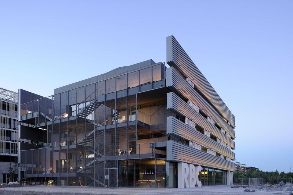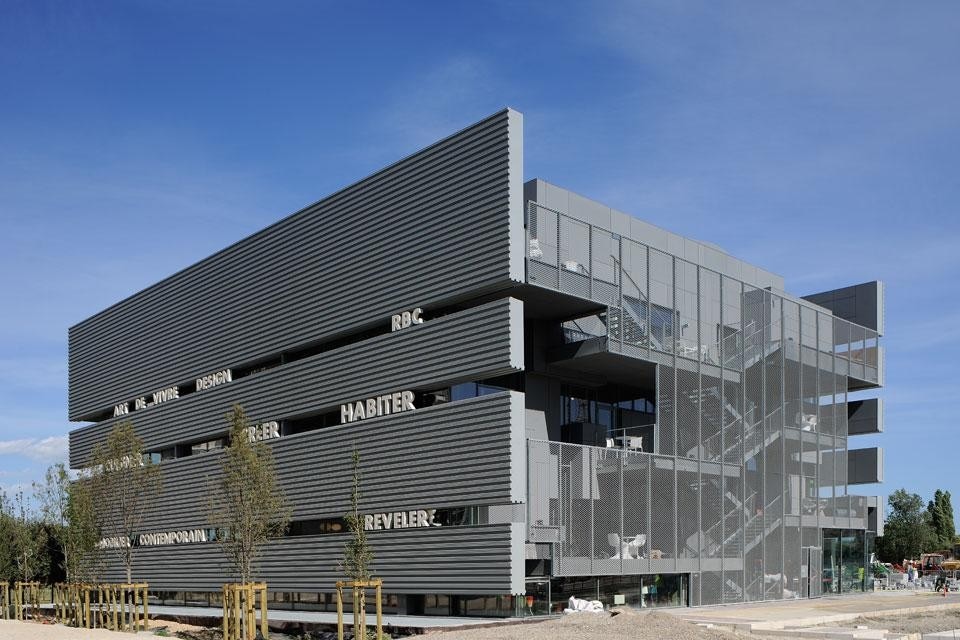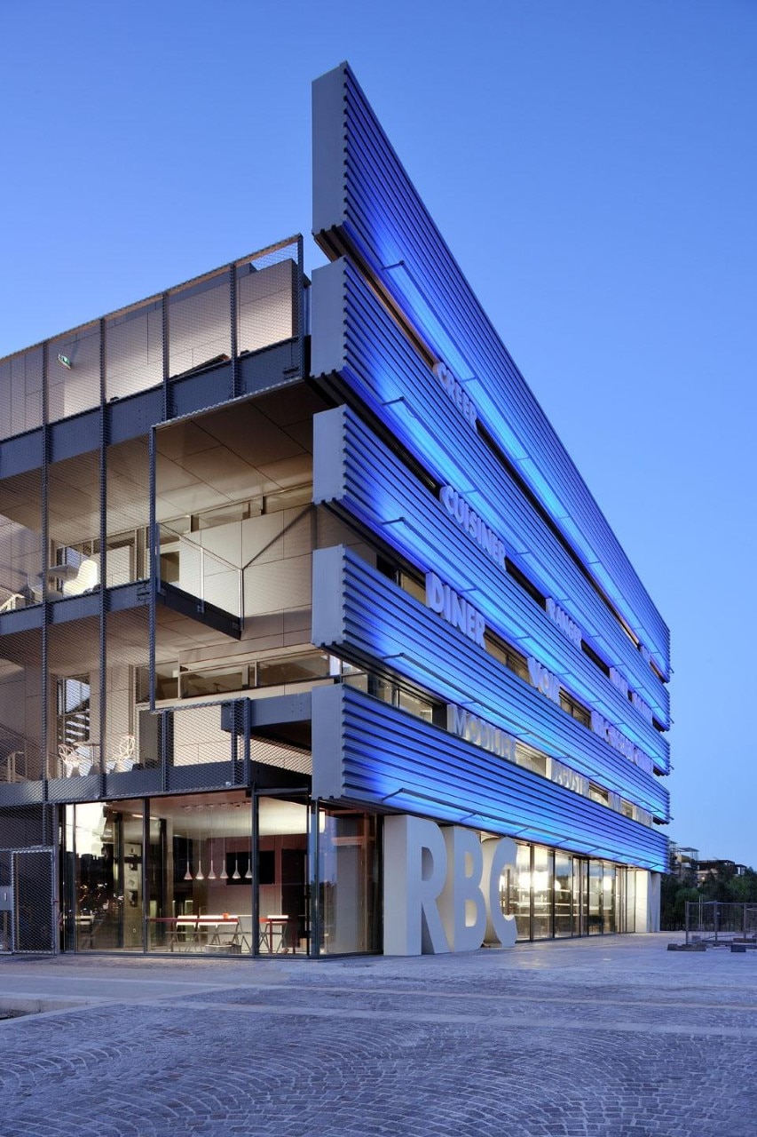 C'è però anche un'altra visione, in grado di dare forma e vita alla città, ma con una sensibilità più vicina alla quotidianità umana. E, come dicevamo sopra, curioso è il fatto che questi due modi di guardare all'architettura siano nati dalla stesso mano e in contatto visivo tra loro. Dalla terrazza del municipio, si scorge, infatti, un secondo edificio dalla scala più contenuta, e ricercato in ogni suo dettaglio: progettato da Jean Nouvel proprio lungo la strada che porta verso il mare, è il nuovo Design Center RBC.