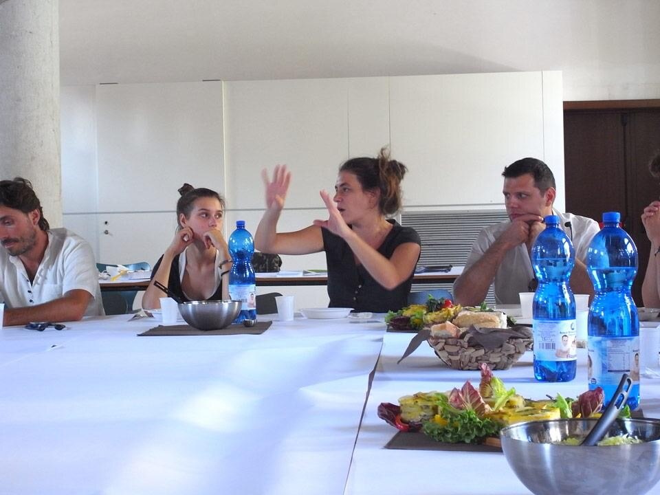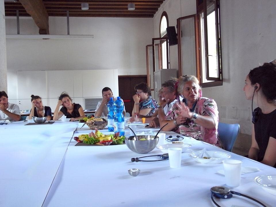 Timidamente il pranzo ha inizio e piano piano emergono le differenze. La rappresentante del gruppo di Roma (parla solo dopo aver scambiato sguardi e parole col marito) è una Rom italiana nomade e tradizionalista, veste in lungo e sembra essere particolarmente in imbarazzo di fronte alla platea.