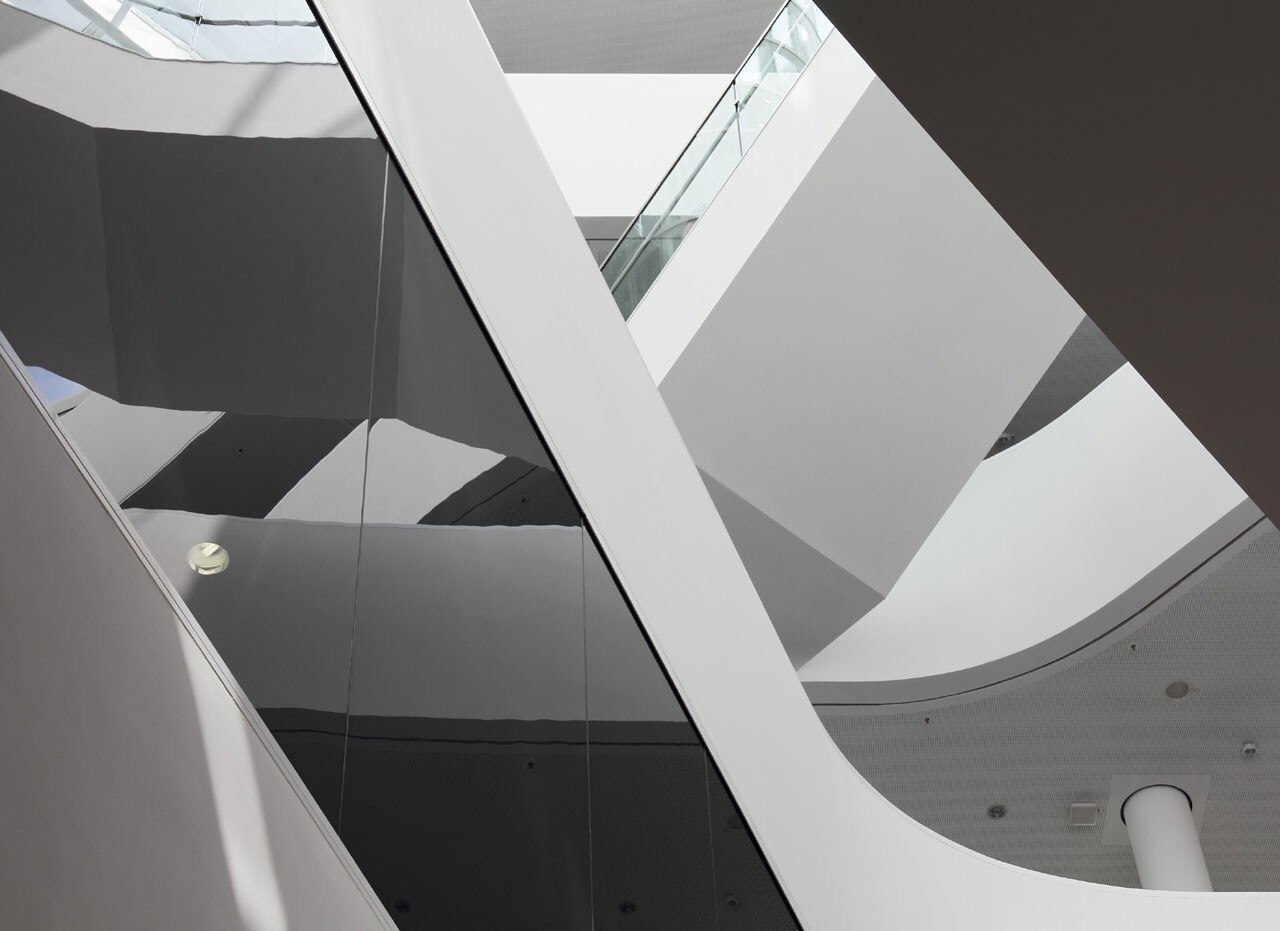 L’edificio ha una doppia facciata: quella più esterna è in vetro bianco serigrafato e avvolge la costruzione come una seconda pelle dandogli un aspetto raffinato e ghiacciato. Il motivo della stampa che ricopre le vetrate modifica la visibilità dall’interno all’esterno, e permette una visuale vagamente trasparente dall'esterno. I diversi ingressi e la facciata esterna hanno un ampio squarcio e quindi permettono la vista della hall e delle aree di ingresso.