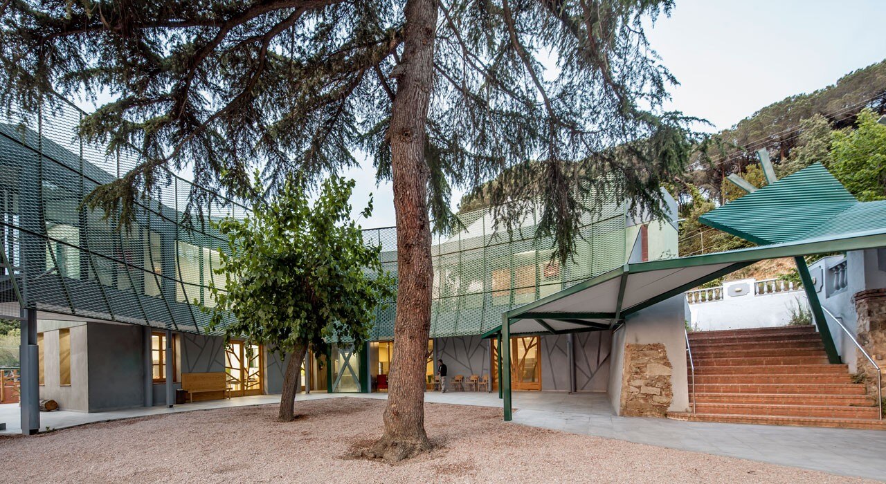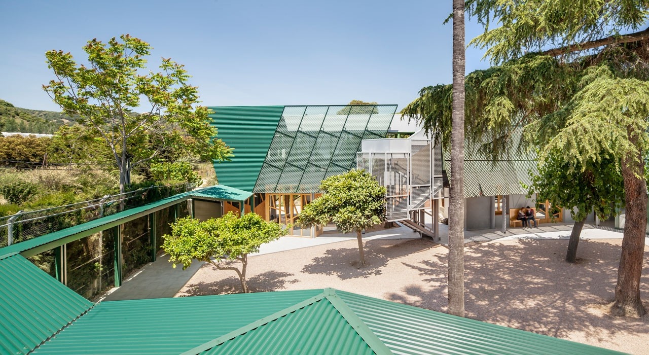 Così, una singola forma geometrica a “L” dialoga con l’edificio principale. Tra i due il patio si colloca come uno spazio di relazione e come il principale spazio esterno del complesso.