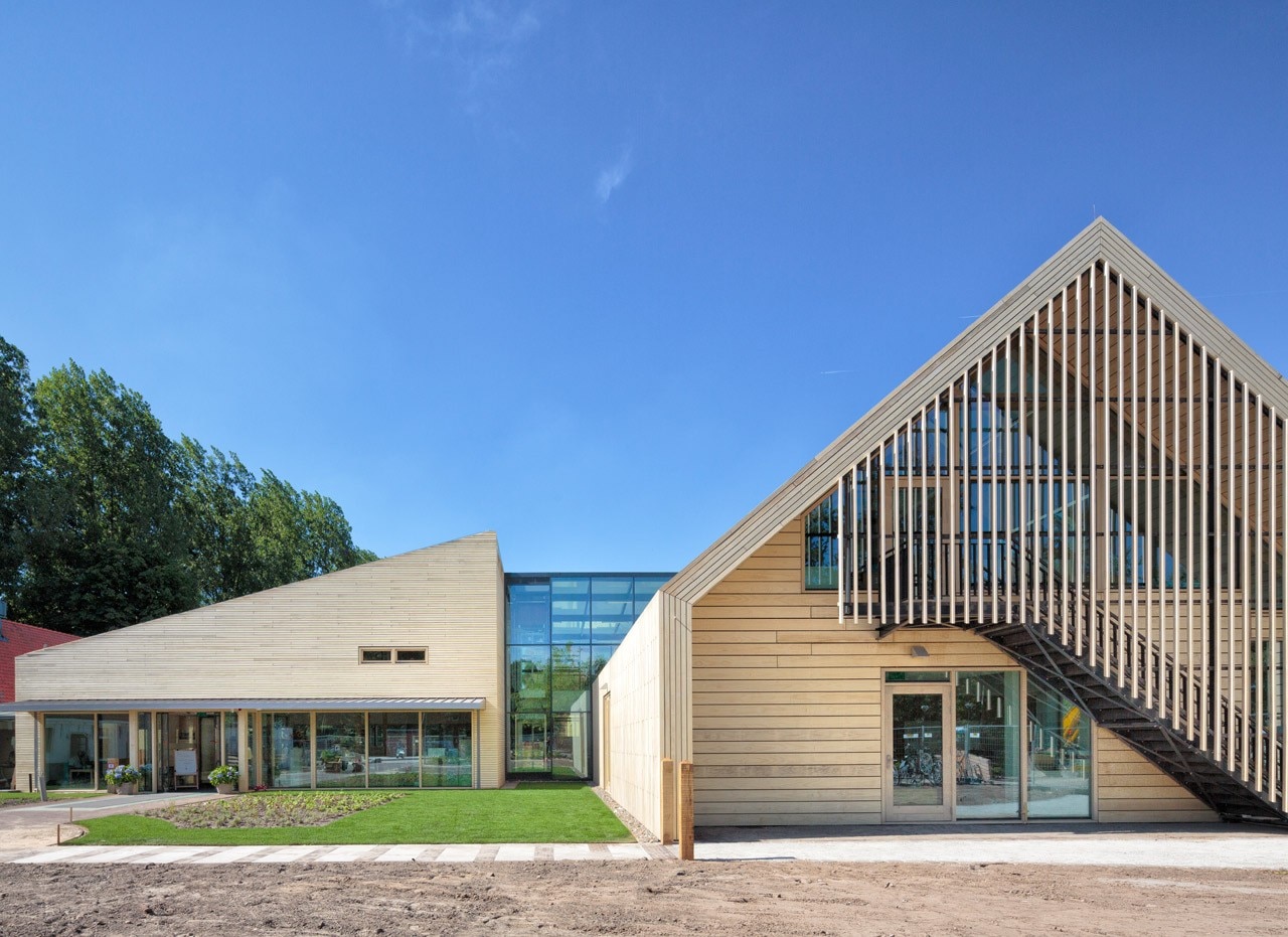 GLi spazi esterni sono progettati dallo studio di design Van Ginneken ripartiti tra spazi verdi, posti a sedere e componenti educative, come per esempio un orto.