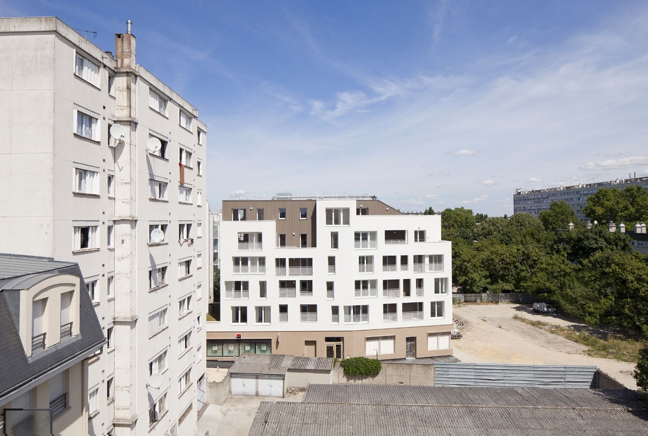 Agence Engasser + associés, 26 alloggi di edilizia popolare a basso consumo energetico e spazi commerciali, Bondy, Parigi